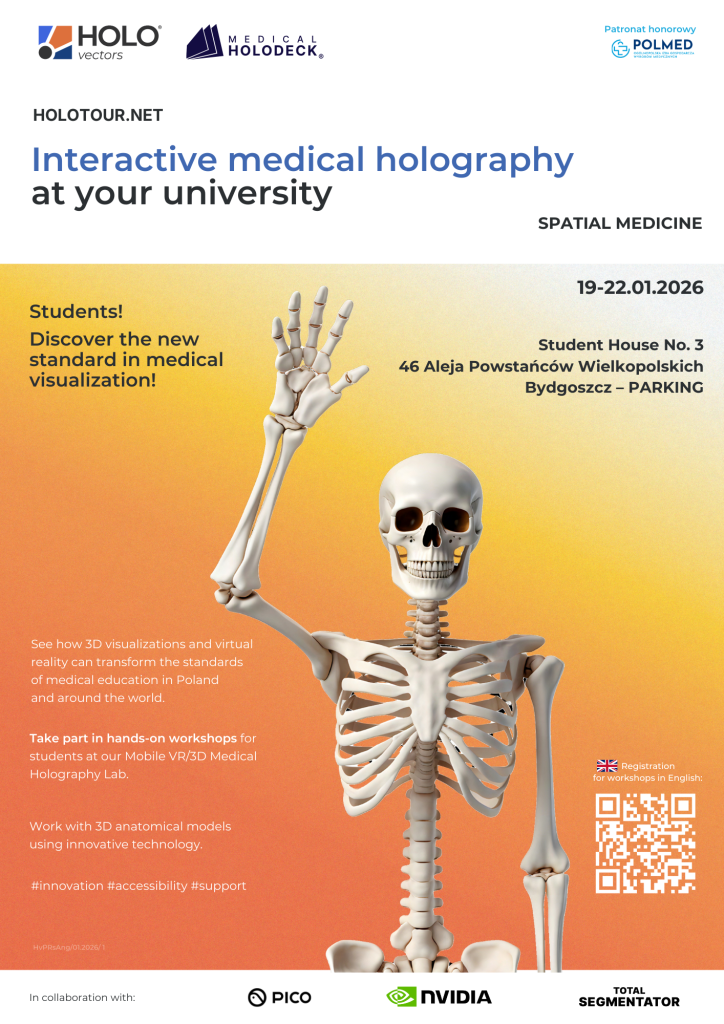 TheMobile VR/3D Medical Holography Lab is coming to the NCU Collegium Medicum in Bydgoszcz from January 19-22, 2026.